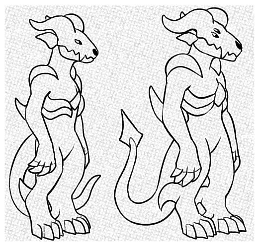 Croconaut - Rogue ClassRogue croconauts are the result of a period of adaptation and mutation by being exposed to rigorous strength and endurance training lasting one to two years. They tend to be slightly taller in size and tend to have a more serious and reserved personality than their Tame counterparts.Its average height is 1.05 to 1.35 centimeters or 3'4 - 4'5 feetTheir body may have more elongated horns and an body physique that is better adapted to activities that involve strength and defense, since they tend to tolerate pain very well. They need constant physical and social stimulation to avoid getting bored that ended up generating inappropriate behaviors, the latter happens more than anything to rogue croconauts in captivity, since in nature they tend to always remain in constant activity.They can mutate into Imp-class if these inappropriate behaviors go on for years, along if they receive any kind of mistreatment or constant isolation that makes them mentally unstable and/or combative against other croconauts within their social group or against their own owner. (human).